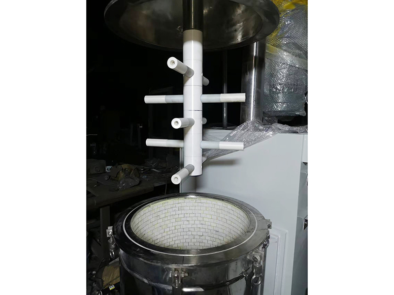 電機通過減速裝置驅動筒體回轉,筒體內的碎礦石和鋼球在筒體回轉時受摩擦力和離心力作用被襯板帶到一定高度后由于重力作用,便產生拋落和瀉落,礦石在沖擊和研磨作用下逐步被粉碎。被粉碎的礦石經排料部分排出筒外。排出的礦物在螺旋分級機中經分級出合格產品后,粗砂通過聯合進料器再回到球磨機內繼續粉磨。供料機連續均勻地喂料,礦石經聯合進料器連續均勻地進入球磨機,被磨碎的物料源源不斷地從陶瓷球磨機中排出。陶瓷球磨機是可以每天24小時連續工作的粉磨設備。