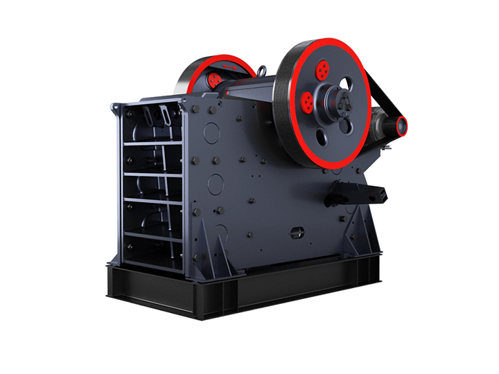 電機通過皮帶輪驅動偏心軸旋轉,動顎隨之做往復運動。