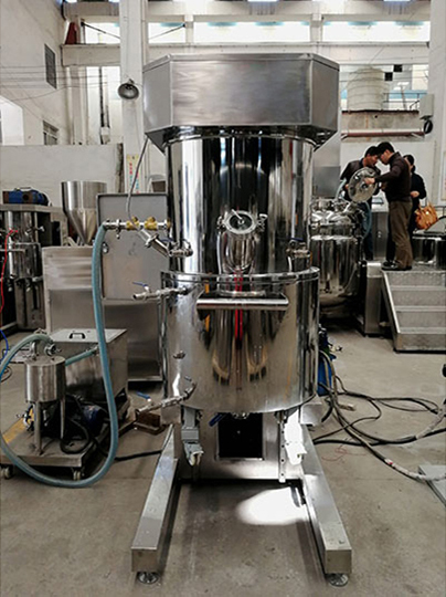 真空行星攪拌機的特點為:主機采用行星齒輪減速機設計,低噪音,機械效率高,可節省動力使用及減少設備占用空間。該機器適用于化工、輕工、食品、電池、制藥、建材、農藥等行業所需的多組份固-固相、固-液相、液-液相物料的混合、反應、分散、溶解、調質等工藝,如油墨、顏料、粘膠劑、密封膠、封裝膠軟膏、糊狀物料、潤滑脂、油漆、膏狀化妝品、添加物等多種高粘稠物的制備。使用粘度范圍10,000~1,000,000CP左右。攪拌器的形式根據物料要求可為多層漿葉式、框式、蝴蝶式、外輪式等。和普通攪拌機相比,它有如下優缺點: